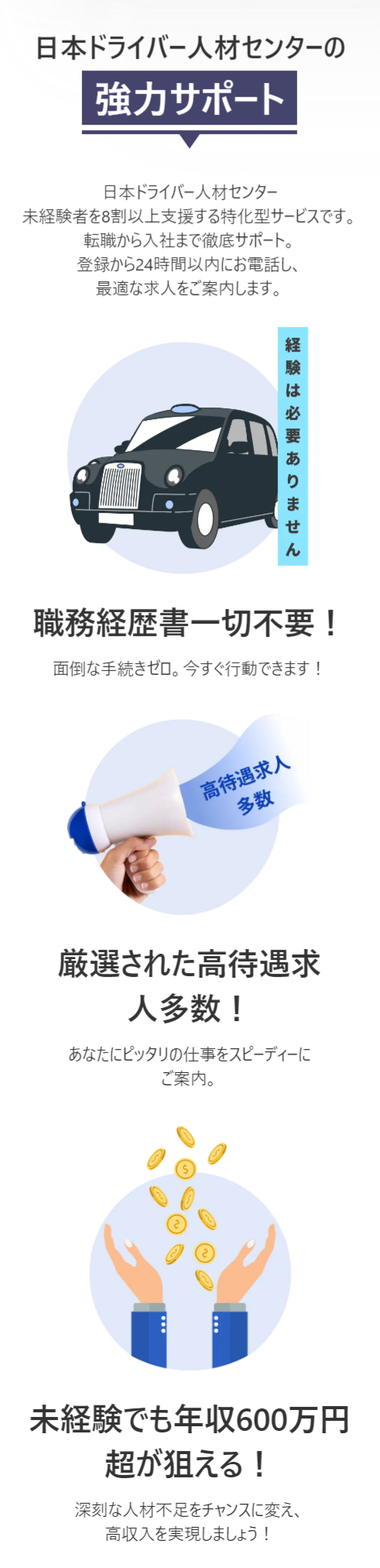 まずは、日本ドライバー人材センターのおすすめポイントをご紹介します。